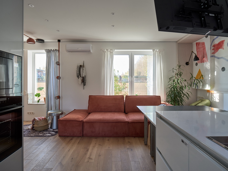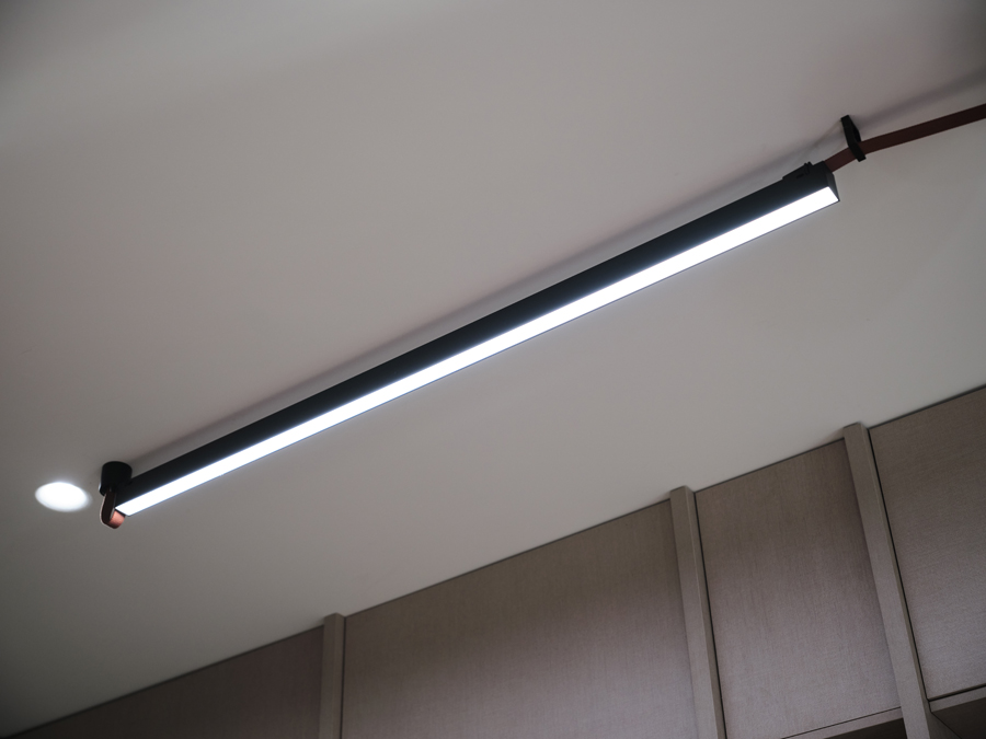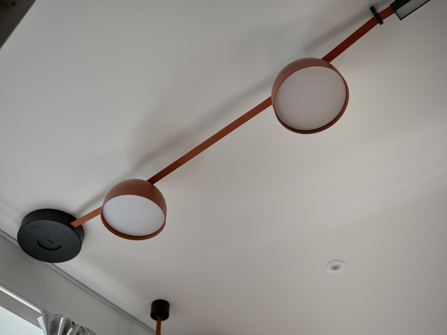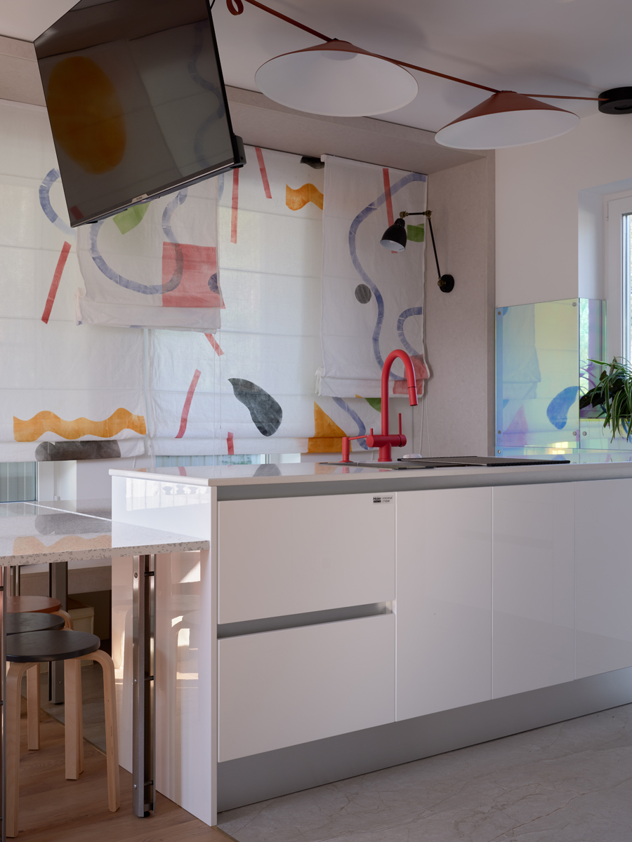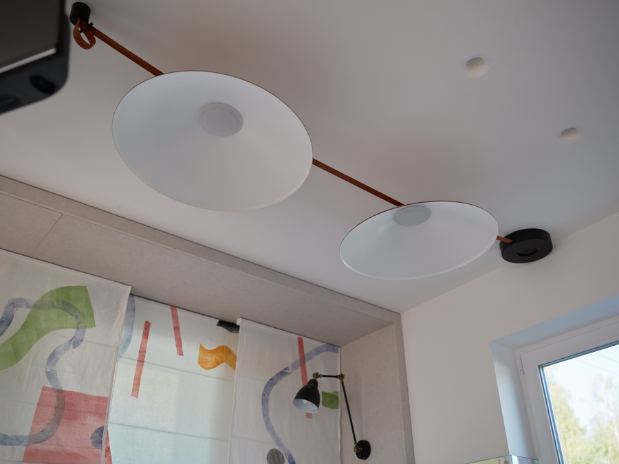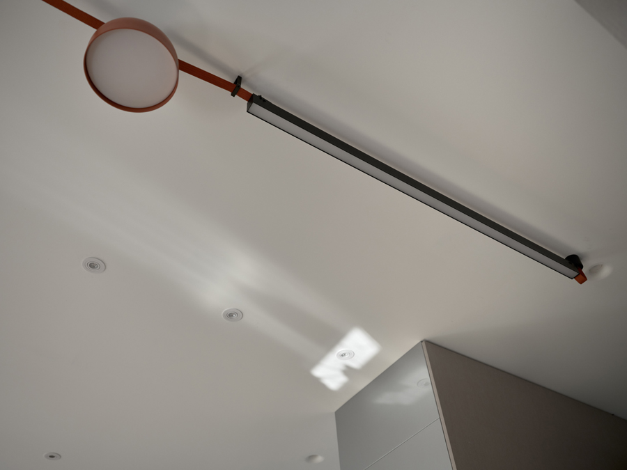Мини-сцену для нашего героя Ивана обозначили трековыми светильниками из коллекции Decorato на токопроводящих ремнях. Еще один аналогичный подвес завис над островом. С помощью таких светильников можно легко создавать различные интересные композиции: элементы можно передвигать и дополнять, при этом система – с низким напряжением, так что прикасаться к ней абсолютно безопасно.